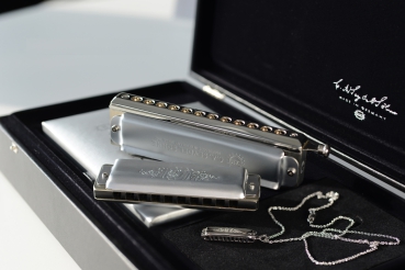 Dieses exklusive Set vereint unsere besten Instrumente in einer edlen Sammelschatulle. Ein Muss für Sammler, Liebhaber und Musiker, die das Besondere suchen. Die außergewöhnliche Qualität unserer Mundharmonikas wird durch präzise manufakturelle Fertigung in Klingenthal sichergestellt.
