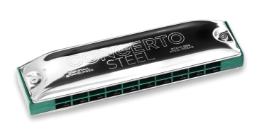Die CONCERTO STEEL ist eine hochwertige diatonische Oktav-Mundharmonika mit zweireihigem Kamzellenkörper. Die Töne sind genau so angeordnet wie auf einer 10er Blues-Harmonica (Richter-Stimmung).